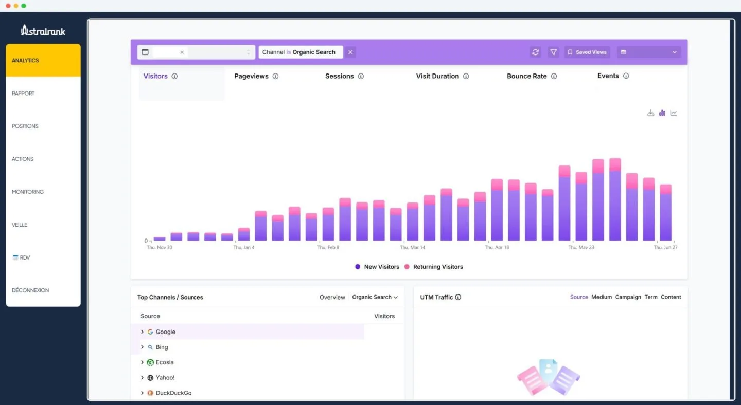 Notre dashboard de suivi SEO & analytics vous permet de suivre chaque progression, chaque victoire, en temps réel – et en toute transparence.